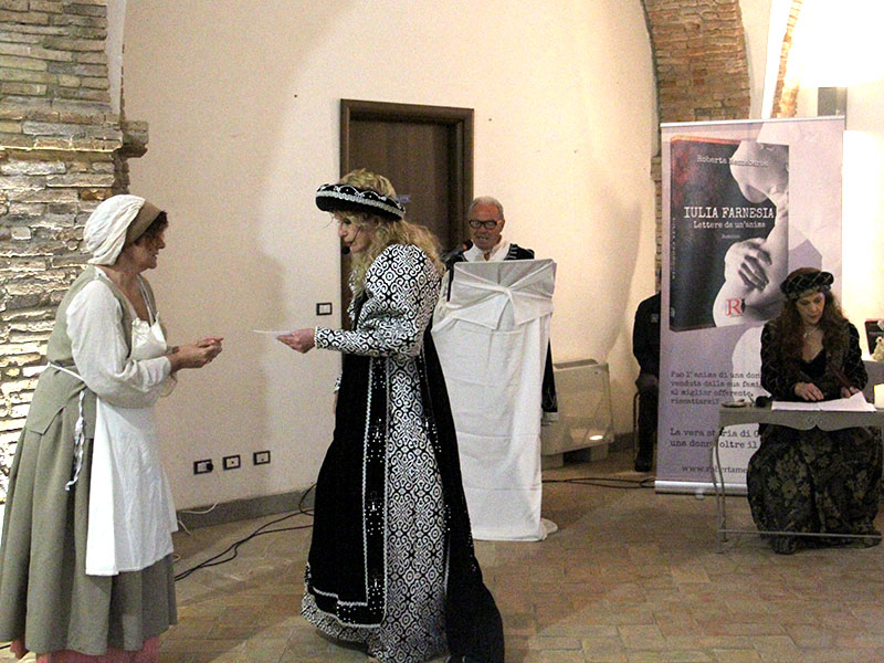 Infine l'arte scenica, con la rappresentazione teatrale del romanzo Iulia Farnesia, attraverso la lettura delle epistole tra Giulia Farnese, mostrata anche nella versione bambina, e l'amica Lucrezia Borgia, fino alla processione funebre che immagina il trasporto sul lago che la porta verso l'Isola Bisentina, accompagnata da fiori lanciati dalle ragazze e donne del paese.