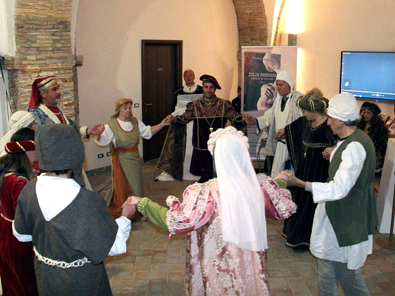 A salutare il numeroso pubblico giunto alla "cascina" il sindaco Mario Fanelli: "Con oggi entriamo nelle celebrazioni del 500° anniversario dalla morte di Giulia Farnese, iniziando con i ragazzi delle scuole che stamani hanno ricevuto i quaderni di Roberta Mezzabarba, per far conoscere il personaggio e la nostra storia.