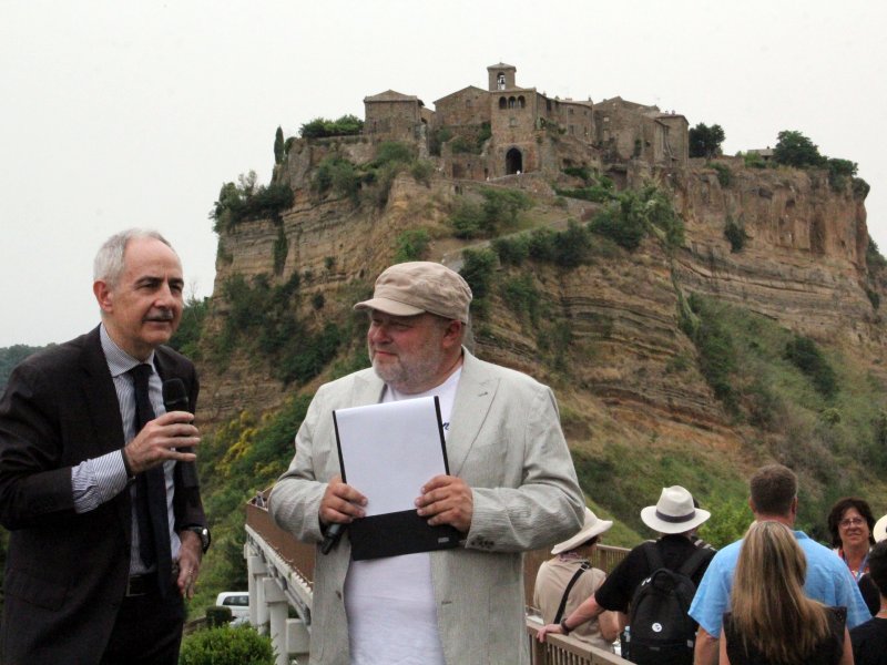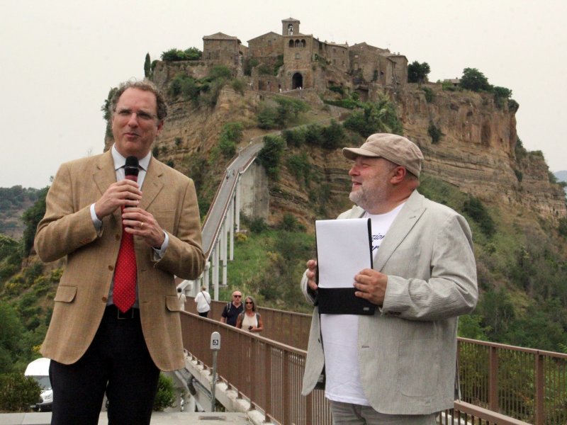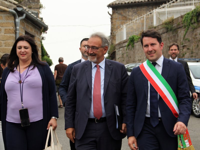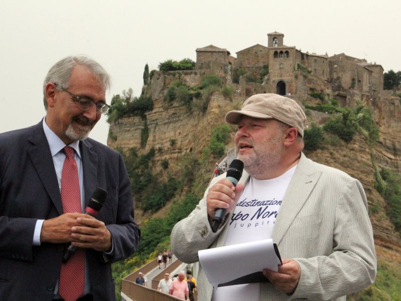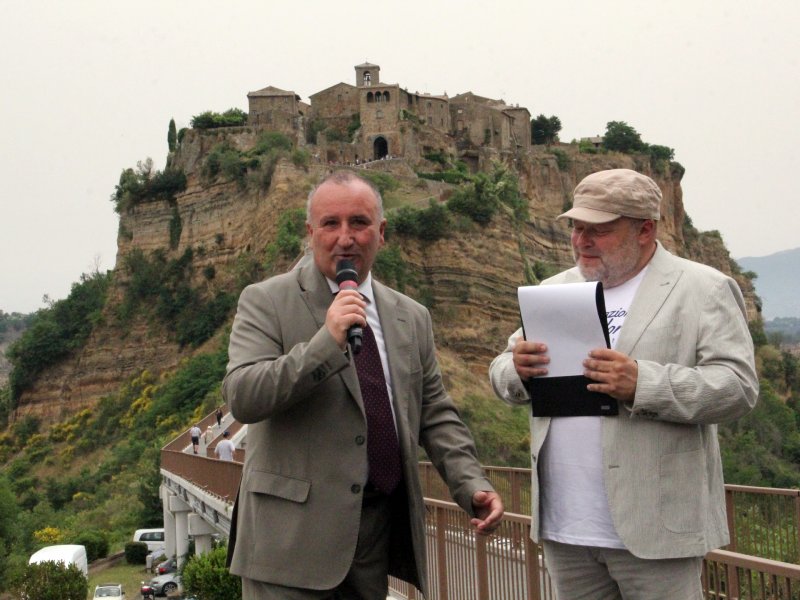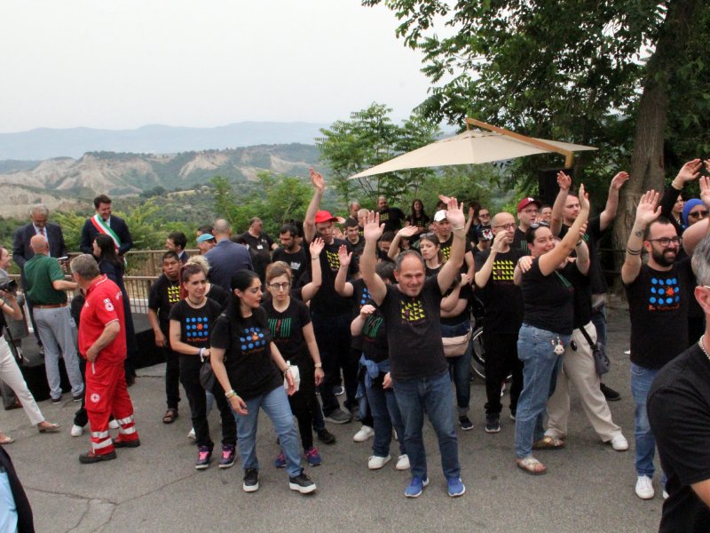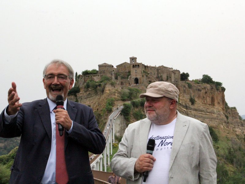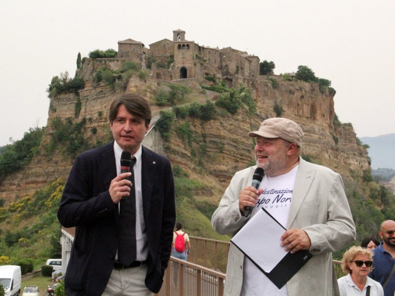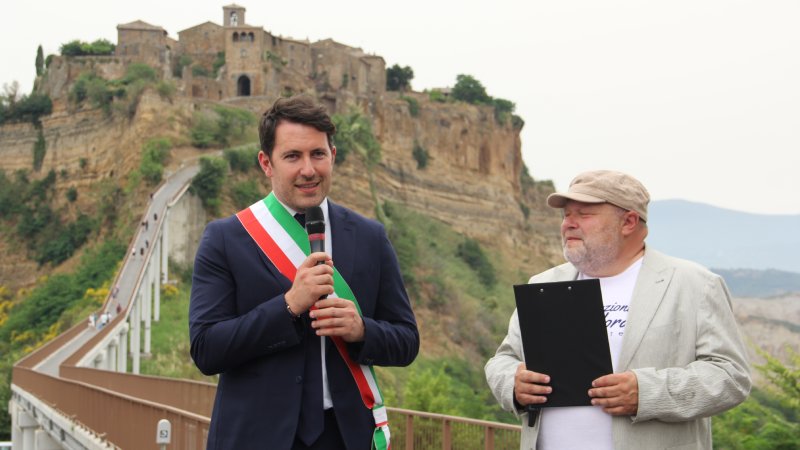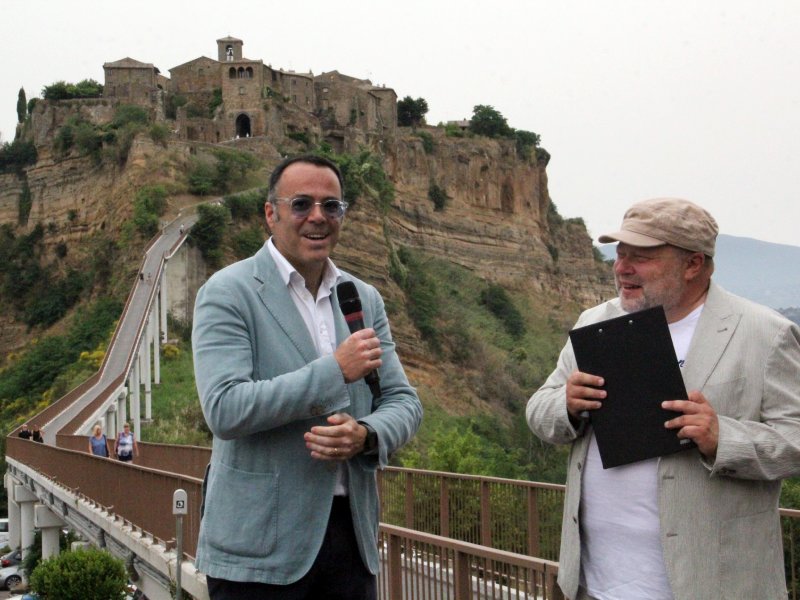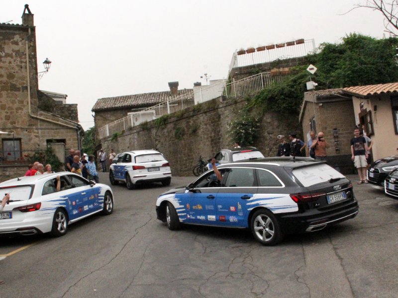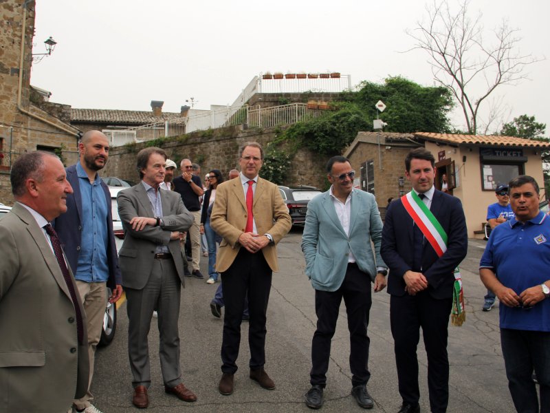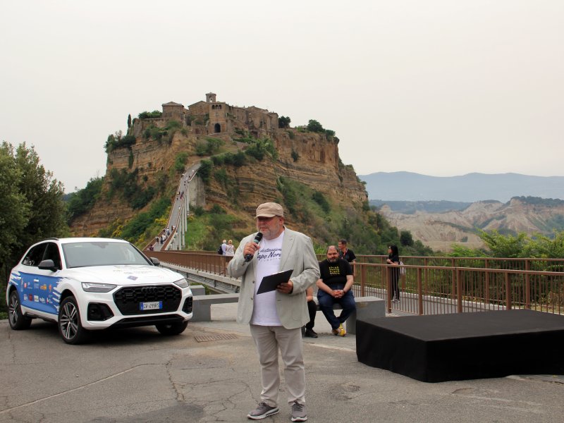 Partiamo dalla bandiera a scacchi, quella sventolata idealmente dal presidente della Regione Rocca e dal sindaco Profili, un "via" che ha fatto partire la carovana lungo la salita che porta al belvedere, lasciandosi alle spalle lo stupendo skyline di Civita di Bagnoregio.