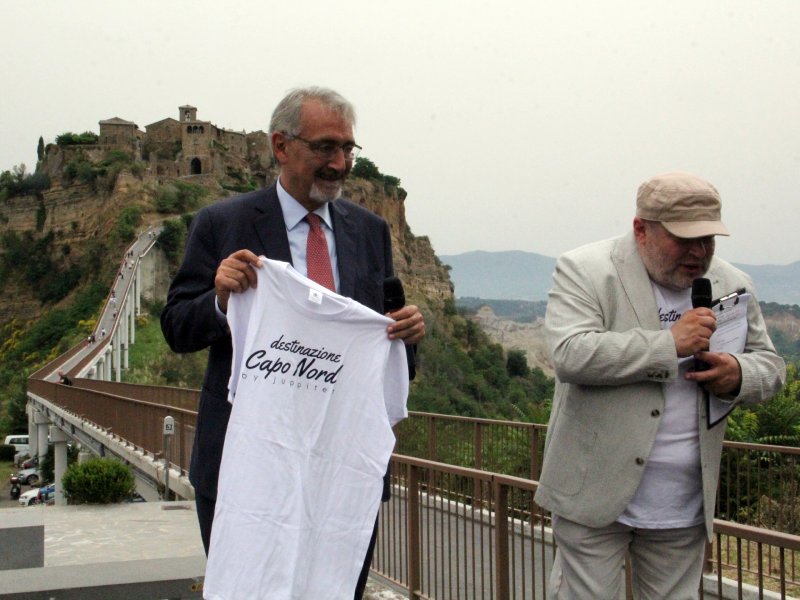 "Andremo in giro per l'Europa e nelle varie tappe spiegheremo perché viaggiamo, con un po' di spettacolo racconteremo la strada che viviamo come maestra" ha spiegato Regoli prima di passare la parola al sindaco Profili, che dopo aver ringraziato Rocca, giunto a Civita come presidente Cri ed ora tornato alla guida della Regione Lazio, ha aggiunto: "Da 8 anni facciamo questo viaggio insieme alla Juppiter e proseguiamo ancora, perché la meta è importante ma il viaggio lo è di più. Confermo che la sera del 23 vi raggiungerò a Copenaghen, come avevo promesso". Per lui, e per tutti gli ospiti, arriva anche la "maglia d'ordinanza".