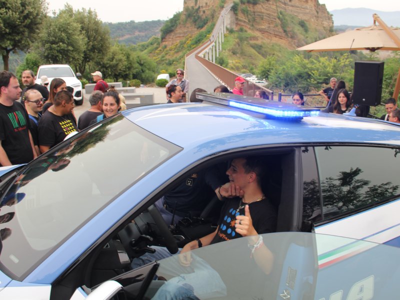 Una macchina che ha fin da subito attirato l'attenzione dei ragazzi che, per la consueta gentilezza dell'equipaggio della Polizia, sono saliti a bordo sognando seduti al posto di guida, qualcuno anche con l'onore di attivare la sirena.