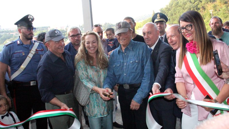 La cerimonia di inaugurazione non poteva non avere Terence come testimonial, come precisato dal sindaco Laura Pernazza, a sugellare una giornata unica per la cittadina: "Ereditammo nel 2016 questa struttura, immersa nel nulla, siamo riusciti a completarlo insieme ai tre coraggiosi 'ragazzi' della Nuoto Academy, e un milione di investimento in project financing che prevede 30 anni di gestione, unendo al meglio pubblico e privato. Grazie alla deroga del prefetto Bruno, che è andato oltre i 10 anni di attesa dalla scomparsa del personaggio a cui intestarla, oggi riconosciamo un premio ad un grande attore ma soprattutto un grande campione di nuoto".