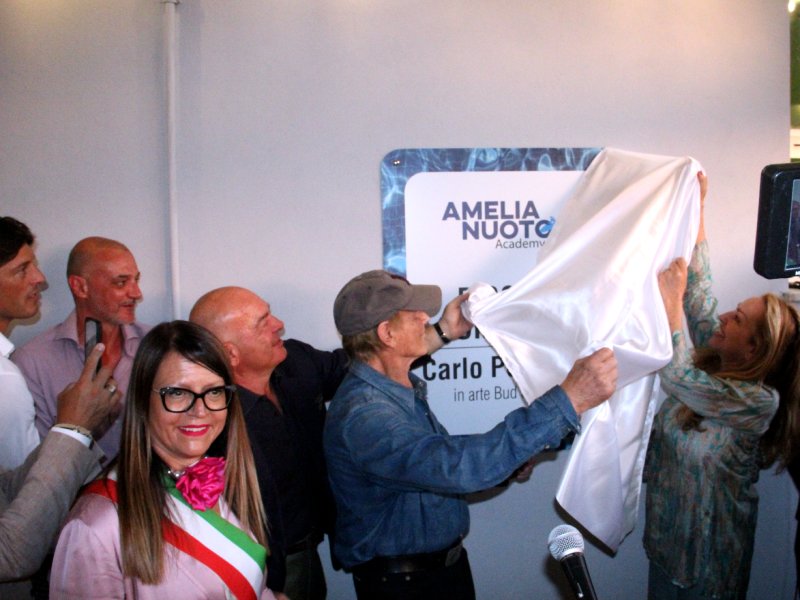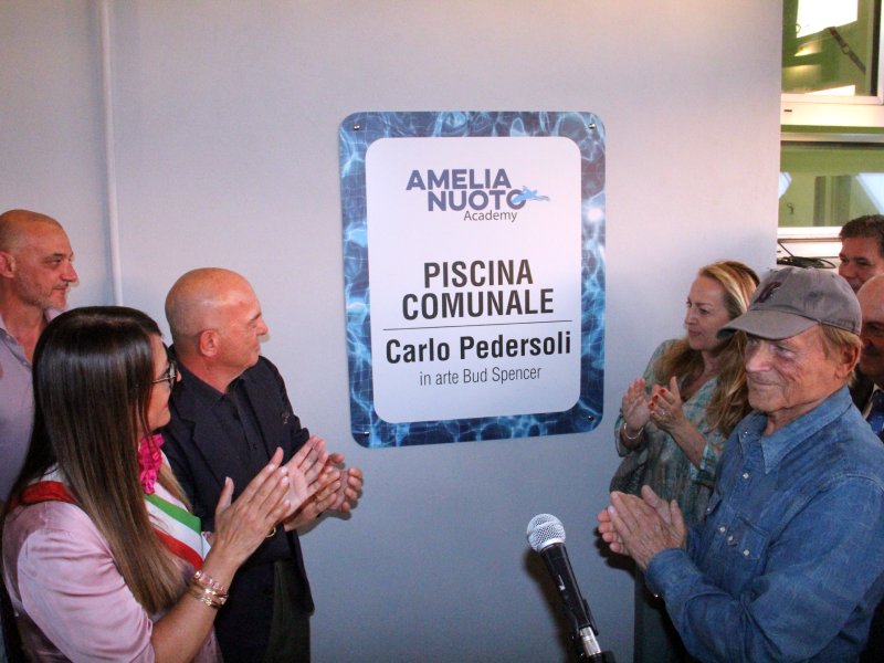 AMELIA - La cittadina umbra riunisce idealmente la coppia Bud Spencer e Terence Hill grazie ad una deroga del prefetto Giovanni Bruno, che ha permesso di intitolare la nuova piscina comunale superando l'attesa prevista dalla legge.