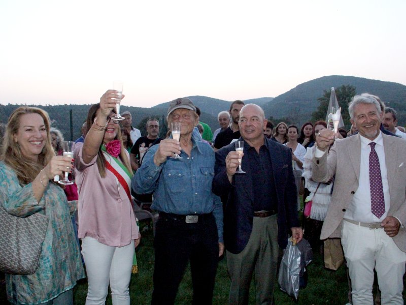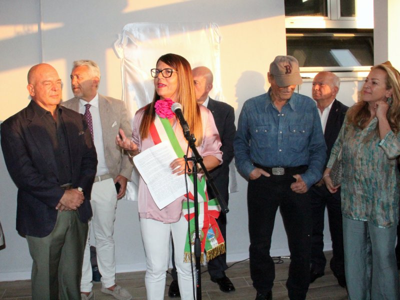 Sono Giuseppe e Cristiana Pedersoli insieme a Terence Hill a scoprire la targa, rendendo ufficiale questa importante intitolazione. Intorno a loro tutte le autorità civili e militari, tanta popolazione e Jess, il figlio di Terence Hill che lo ha accompagnato in questo tuffo nel passato.