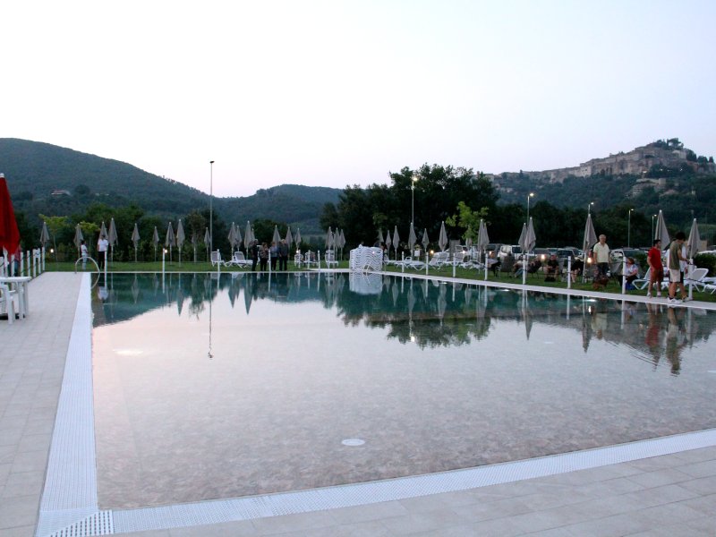 Brindisi e complimenti per una struttura ben fatta, che offre una piscina interna, invernale, a norma per realizzare gare e competizioni, mentre fuori una piscina a sfioro, con gradini d'ingresso per i più piccoli permetterà qualche bagno estivo, ammirando in alto e sul riflesso il bellissimo skyline di Amelia.