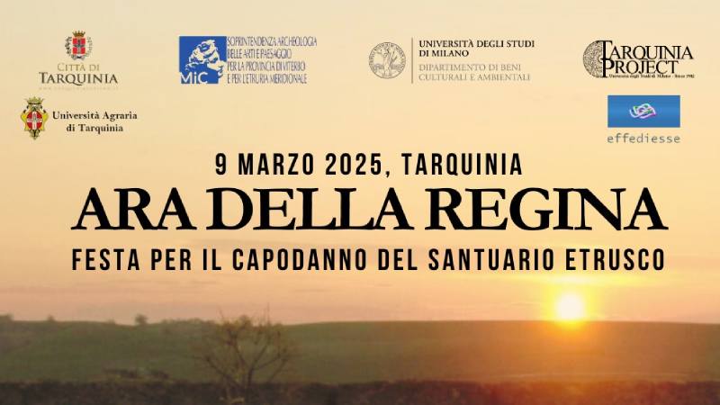 È la festa per il capodanno dell'Ara della Regina che si celebrerà domenica 9 marzo, in occasione dell'annuale allineamento tra il sorgere del sole e il monumentale basamento del tempio etrusco, con una visita guidata esclusiva al sito archeologico, alle 6 di mattina, a cura del Comune di Tarquinia e dell'Università degli Studi di Milano.