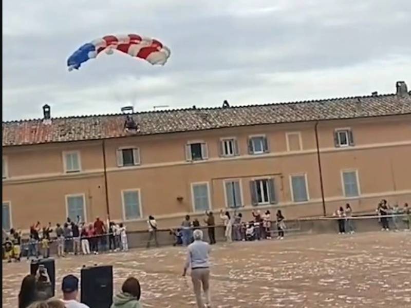 CAPRAROLA - L'atterraggio "speciale" del paracadutista sui tetti circostanti il piazzale di Palazzo Farnese sarà protagonista stasera della nuova puntata di Striscia la notizia.