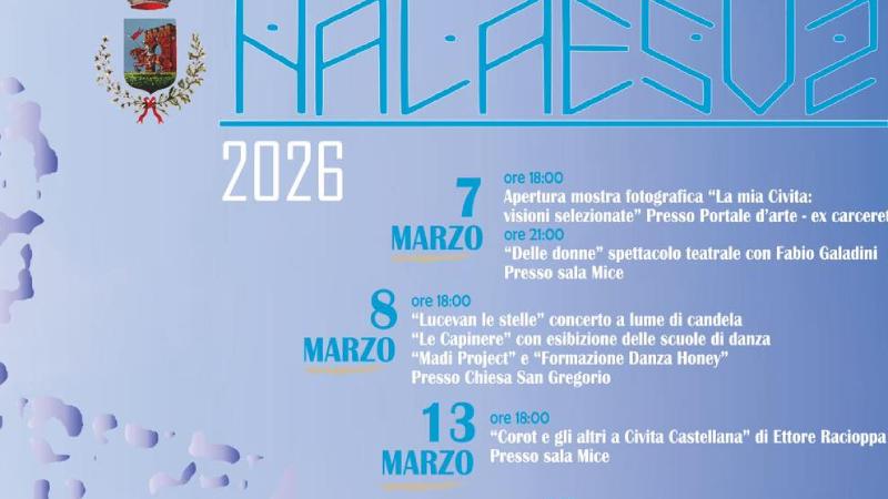 La rassegna prenderà il via sabato 7 marzo con l’inaugurazione della mostra fotografica “La mia Civita: Visioni selezionate” al Portale d’Arte, nei locali ex carcerette, seguita in serata dallo spettacolo teatrale “Delle donne” con Fabio Galadini.