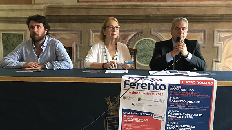 Sono quattordici gli appuntamenti in cartellone, tra danza, classici, concerti e nuove proposte, della 54ª stagione estiva di spettacoli nell'incantevole scenario dell'area archeologica di Ferento: nove nell'antico teatro romano, cinque nello spazio adiacente le antiche terme per "Tramonti a Ferento". Ad illustrare questa mattina tutti gli eventi è stata Patrizia Natale, , insieme al sindaco Giovanni Maria Arena e all'assessore alla cultura e al turismo Marco De Carolis.