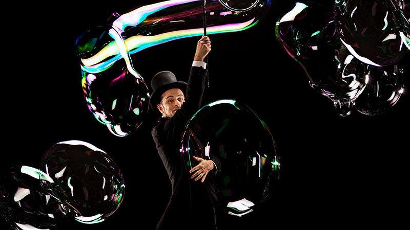 Un eccentrico direttore d'orchestra porterà il pubblico nel mondo fragile e rotondo delle bolle di sapone per un “concerto” dove l’imprevisto è sempre in agguato: da strani strumenti nascono bolle giganti, bolle rimbalzine, bolle da passeggio, grappoli di bolle, mentre i più paffutelli potranno entrare in una bolla gigantesca!