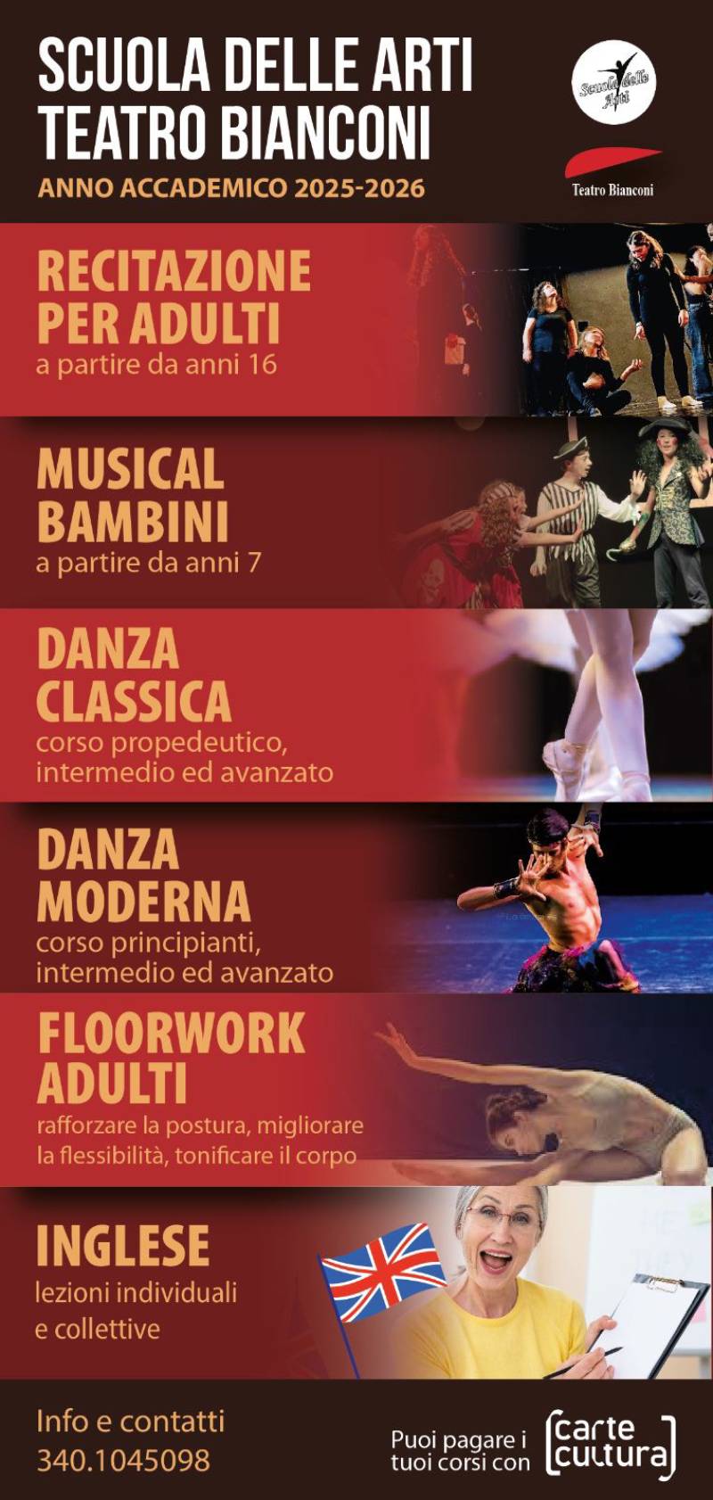 Ma non finisce qui perché sono iniziati anche i corsi della Scuole delle Arti tenuti da professionisti qualificati: Recitazione, Musical, Danza Classica e Moderna affiancati corsi Floorwork per adulti e di lingua Inglese.