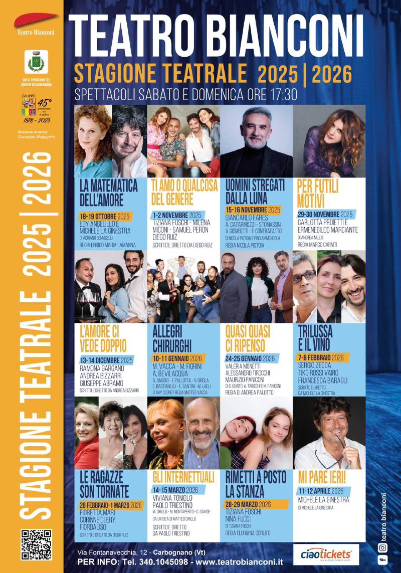 CARBOGNANO - Dopo lo straordinario successo degli scorsi anni con spettacoli ripetuti più volte, anche quest’anno la Direzione Artistica del Teatro Bianconi presenta un intero cartellone con 5 appuntamenti dedicati a tutta la famiglia: dai più giovani ai più grandi, dove tutti potranno trascorrere un pomeriggio all’insegna del divertimento, della sorpresa e della meraviglia come solo il teatro può donare.