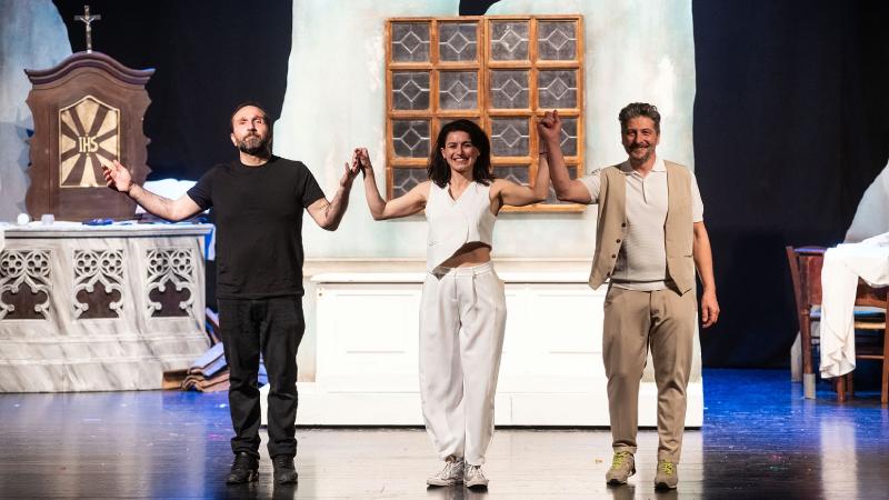 Lo spettacolo vede in scena un trio comico di grande esperienza: Valeria Monetti (apprezzata sin dai tempi di Amici e volto noto del musical italiano), insieme a Alessandro Tirocchi e Maurizio Paniconi (autori e attori di successo tra radio e TV), già protagonisit nelle stagioni precedenti al Bianconi e sempre con un successo travolgente. La regia di Andrea Palotto ritma perfettamente i tempi comici, trasformando una situazione quotidiana in una farsa moderna e intelligente.
