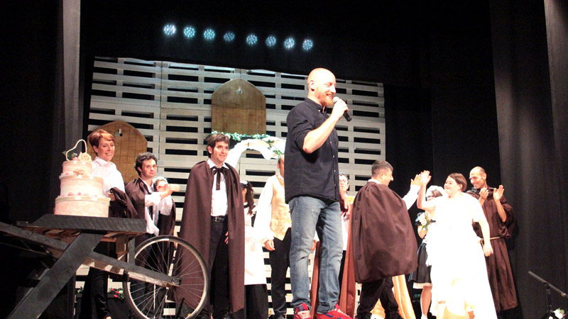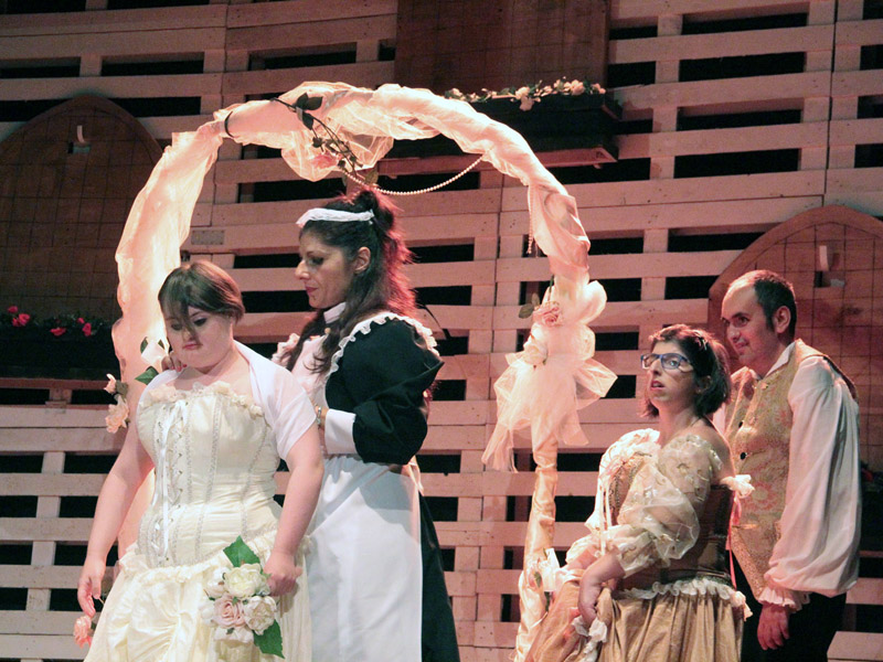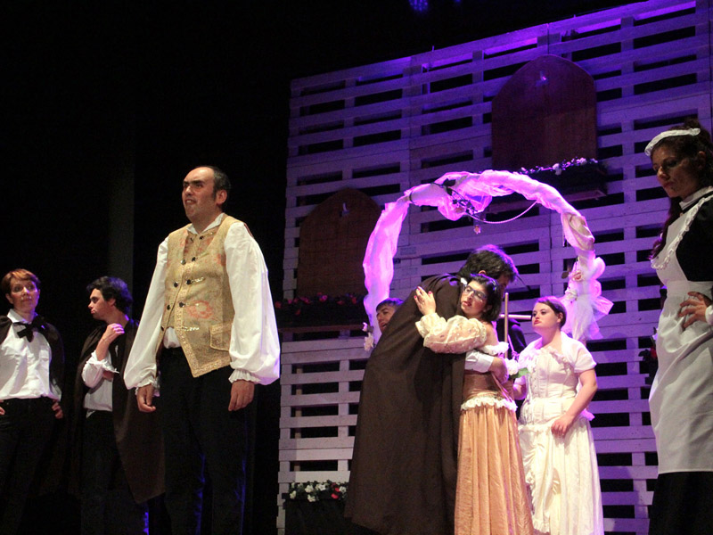 Il cast, composto dalle educatrici e da Mariaceleste Carnassale, Francesco Carvone, Martina Casagrande, Tommaso Cristofori, Tiziano Piscini, Corrado Ricci, Marta Troili, Stefano Vagnoni, con la partecipazione straordinaria di Federico Nardi nel ruolo del frate officiante, ha affrontato battute e recitazione con il piglio del professionista, strappando risate sia per le battute originali che per quelle aggiunte ad arte dal regista, per attualizzare il testo.