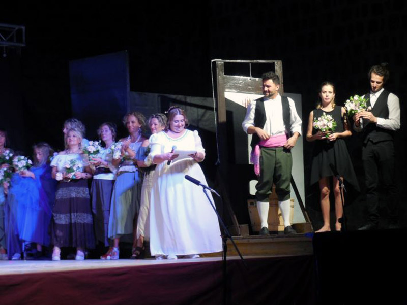Ospite della serata l'assessore alla cultura del Comune di Viterbo, Alfonso Antoniozzi che dal palco è intervenuto con questa parole: ”Amatoriale, professionale, non importa chiunque ha la fortuna di mettere un piede sul palcoscenico, chiunque ha il lusso di diventare un altro per due o tre ore dello spettacolo e per tutto il corso delle prove, chiunque ha la gioia di poter condividere un progetto teatrale insieme a dei compagni, è una persona fortunata. Questa sera, caro pubblico, vi svelo un segreto, più riderete, più vi divertirete e più vi farete sentire, e più bello sarà lo spettacolo che voi andate a vedere, perchè noi da qui ci nutriamo di quello che succede là. Quindi quello che voglio dire è che lo spettacolo lo fanno gli artisti, ma anche il pubblico”. Applausi.
