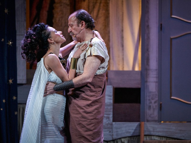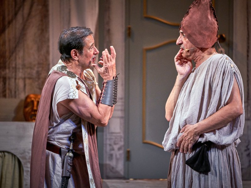 VITERBO - Applausi e un'infinità di risate al teatro romano di Ferento per l'Anfitrione portato in scena da Emilio Solfrizzi, nella doppia veste di regista e attore, indossando i panni del servo Sosia.