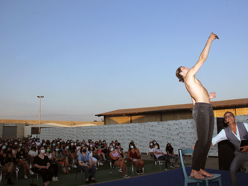 L'appuntamento, organizzato nel rispetto delle norme covid, opportunamente visionate dal prefetto Bruno, ha coinvolto 200 persone, sedute distanziate davanti il palco all'aperto, dove è stato accolto Tommaso, coinvolto da una serie di domande di Francesco Laurenti. Prima del ballerino è stata Giulia Orsolini ad aggiungere dettagli sull'azienda e sulla reallizzazione della "casetta".